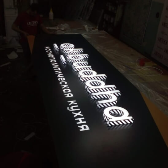 Плюсом такой технологии является её универсальность — буквы и световые элементы могут быть любого размера и формы.