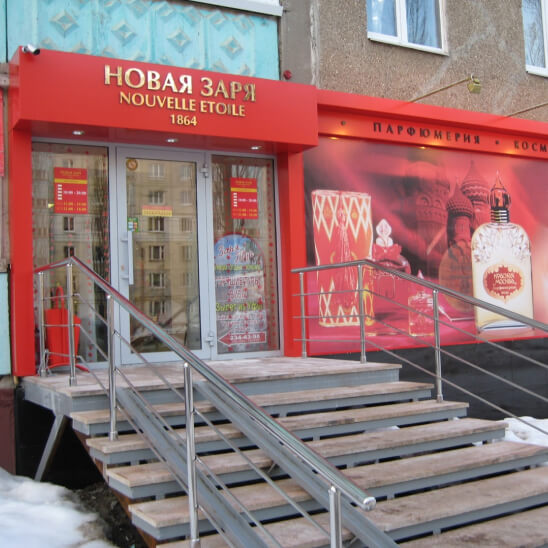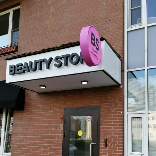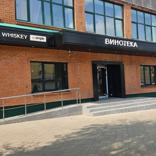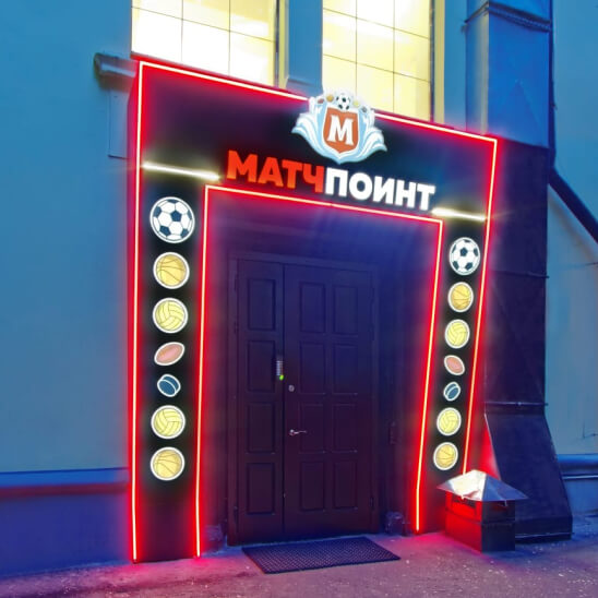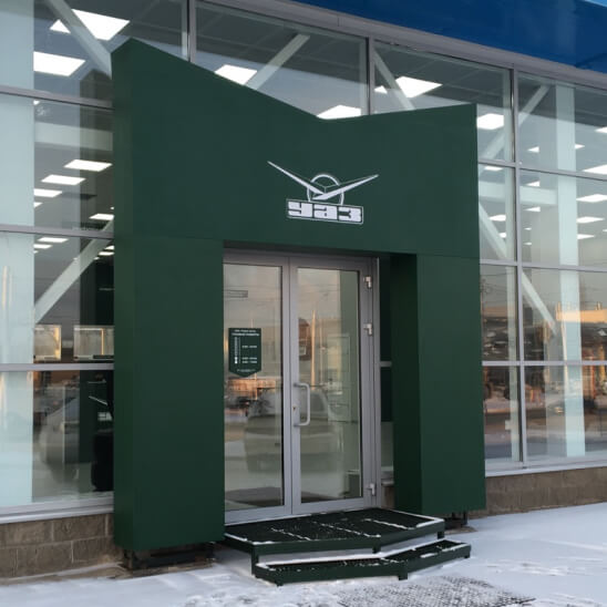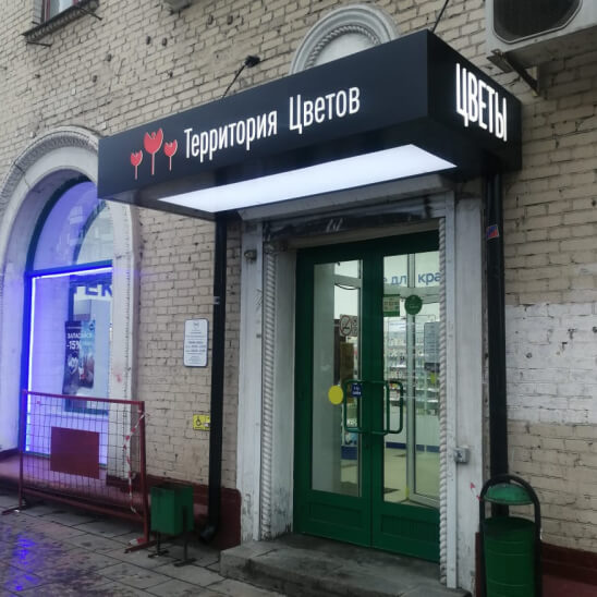 Полная или частичная отделка фасада вокруг входа для создания единого фирменного стиля. Подходит для крупных объектов, таких как ТЦ, гостиницы и рестораны. Позволяет использовать различные материалы и подсветку.